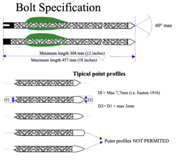 - Es muss ein einzelner Pfeilhalter fix befestigt sein, außer der Pfeil besitzt eine aufsteckbare Nocke wie beim Bogenschießen.