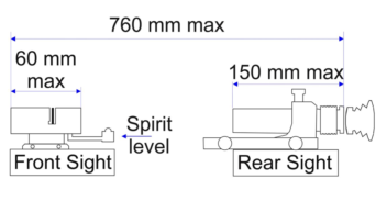 - Die Visierung darf vom Vorderen Teil (Korntunnel) bis zum hinteren Teil (Kimme, Diopter) nicht länger als 76 cm sein